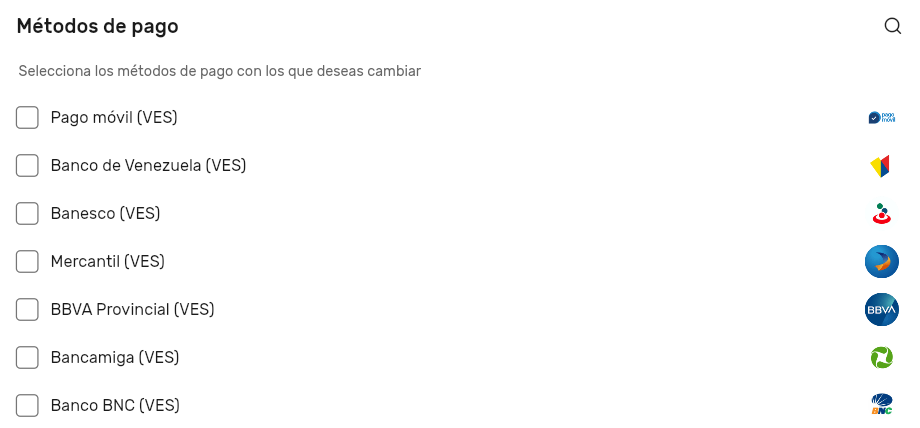 - Allí se despliegan las ofertas disponibles. Puedes usar filtros según tu necesidad para especificar el método de pago y la cantidad exacta que deseas cambiar.